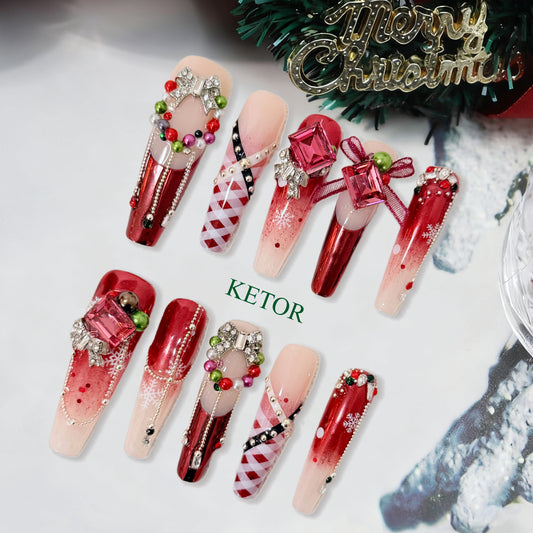 【CHRISTMAS】Handmade High-Quality Press On Nails – Salon-Grade Finish, Durable & Reusable