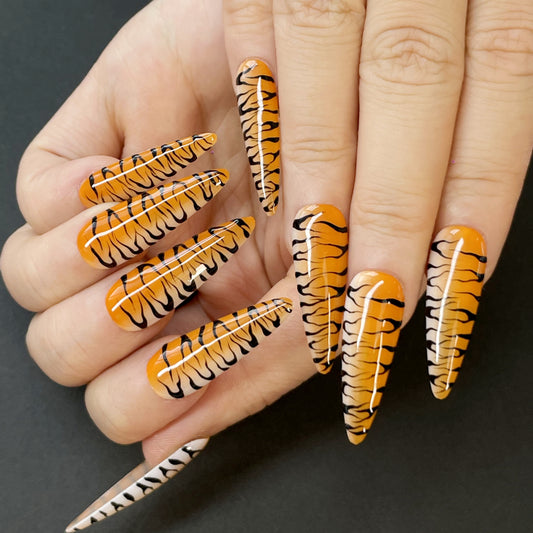 Tiger Print Press-On Nails – Wild & Trendy Design in Yellow-Brown and Black, Imitating Bold Animal Pattern for Fierce Fashion Looks(K19)