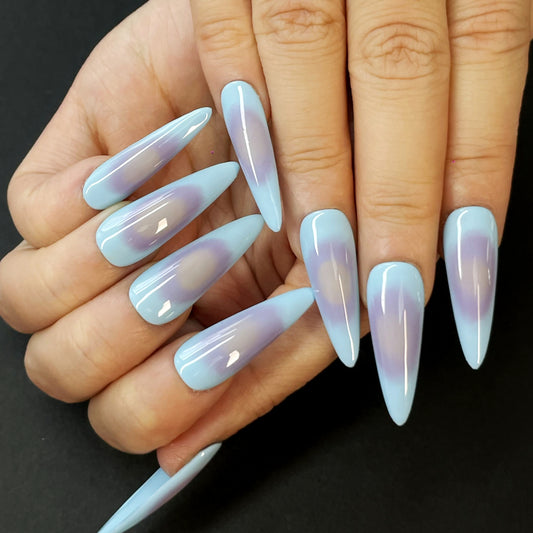 Gradient Press-On Nails – Soft Blue to Lavender Ombre with Beige Tones, Dreamy and Fresh Style for a Delicate Everyday Look(K23)
