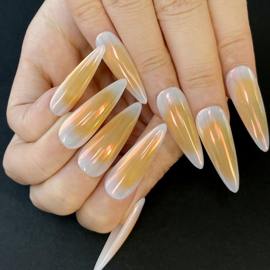 Gold Gradient Stiletto Press-On Nails – Clear to Yellow Ombre with Glossy Shine, Elegant and Glamorous Look for a Stylish Statement(K26)