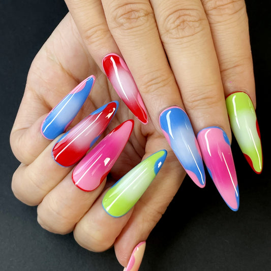 Colorful Gradient Stiletto Press-On Nails – Pink Blue Ombre, Red-Green Mix & More, Bold and Youthful Style for Vibrant, Unique Looks(K28)