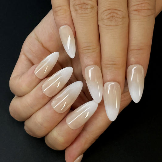 Almond Nude Gradient Press-On Nails – Elegant Beige Fade from Base to Tip, Simple and Sophisticated Look for Work, Daily Wear & Formal Occasions(K31)