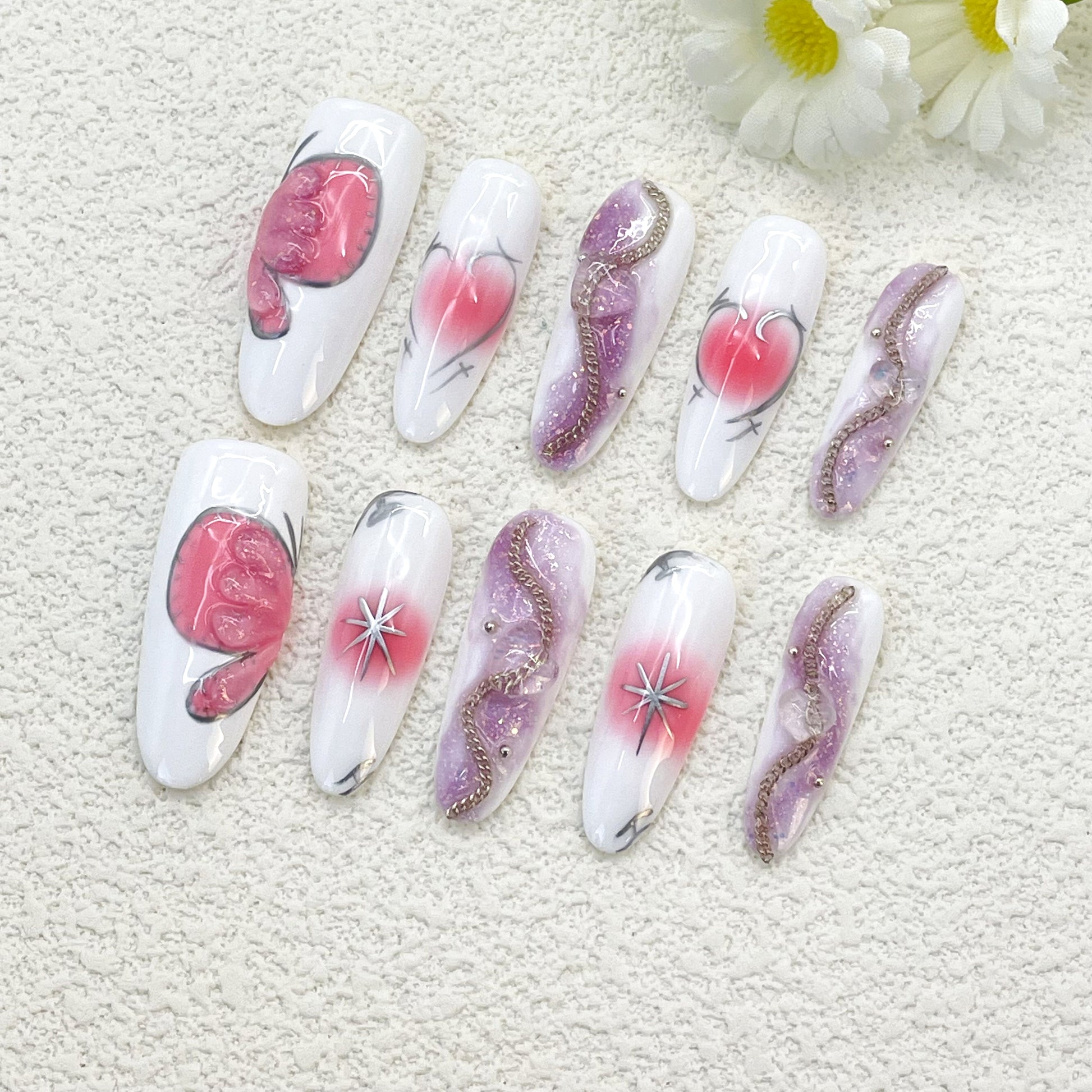 Our press-on nails are thoughtfully designed with creativity and care, each set crafted by hand to ensure top-notch quality. Based in California, we are proud to offer luxurious nails made from premium materials that are durable and reusable. Whether you're looking for a fun, bold look or something more elegant, our nails are perfect for any occasion.