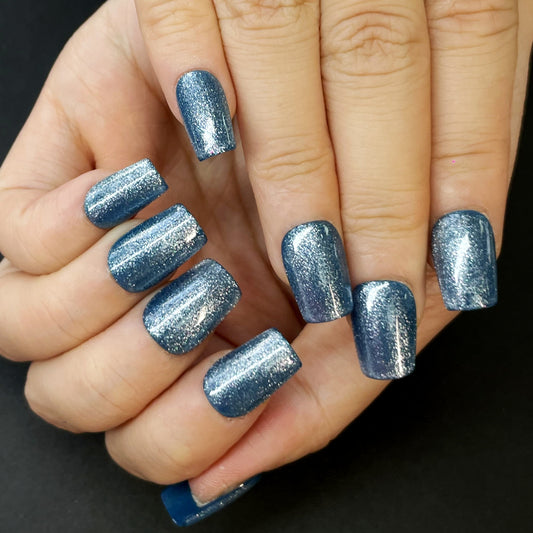 Blue Glitter Press-On Nails – Short Square Shape with Dazzling Sparkles | Bold & Shiny Look for Party-Ready Style(K7)