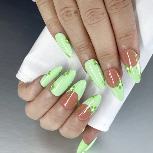 Fresh & Cute Press-Ons | Mint Base with Pink & Floral Touches(K43)