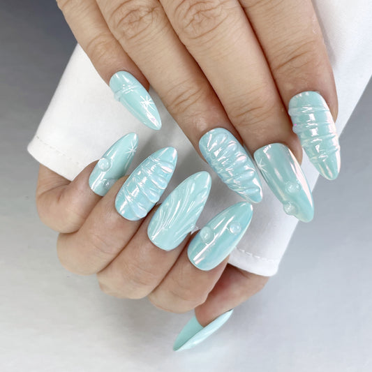 Fairy-Tale Vibes ✨ Light Blue Textured Press-On Nails(K48)